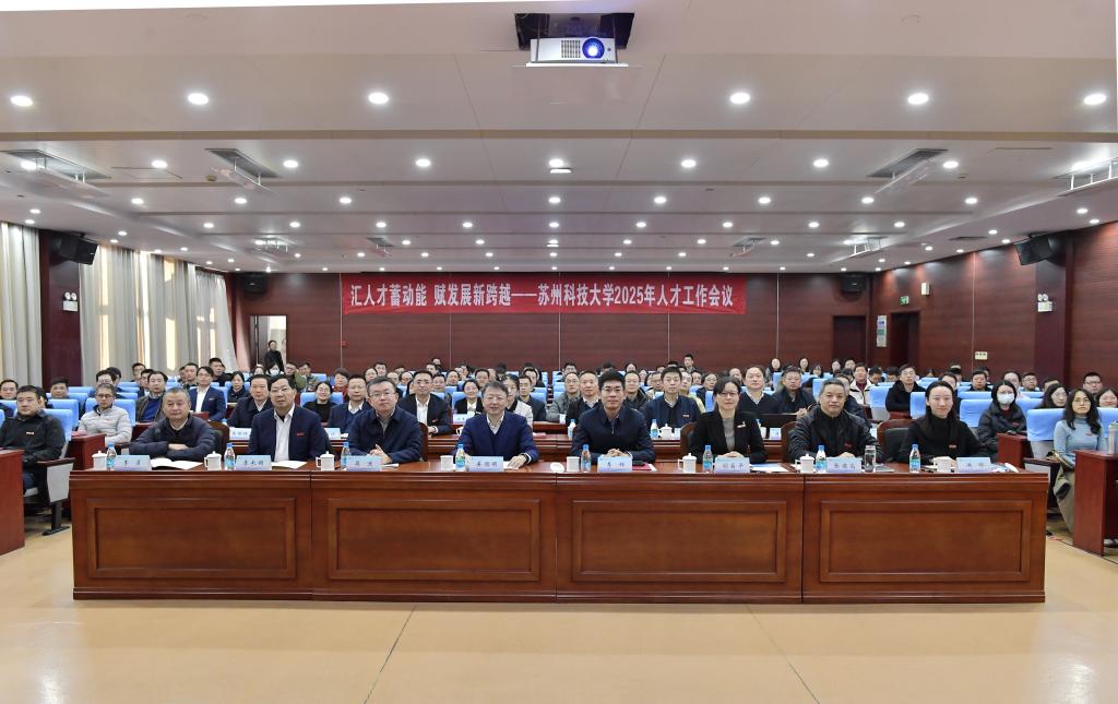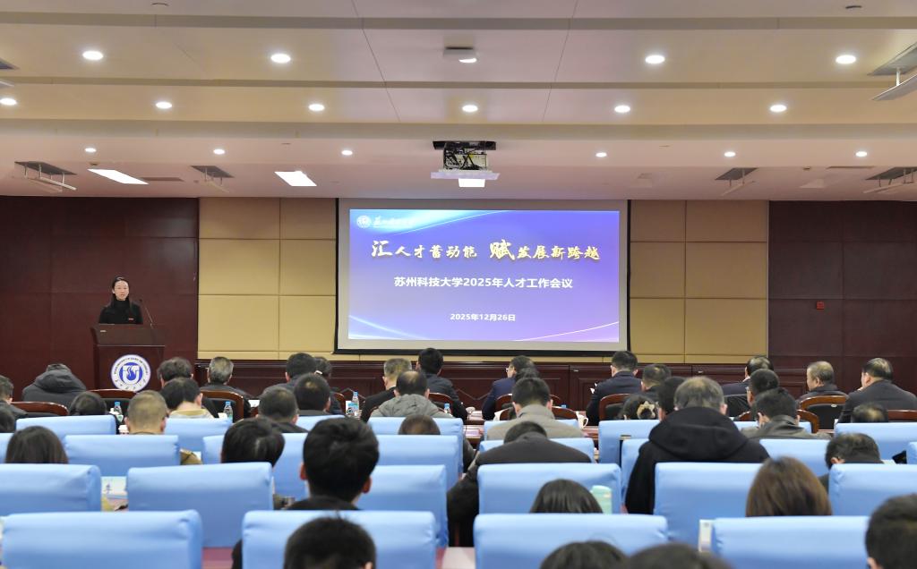 2025年12月26日,苏州科技大学于石湖校区隆重举行2025年人才工作会议。本次会议以“汇人才蓄动能,赋发展新跨越”为主题,深入学习贯彻习近平总书记关于新时代人才工作的重要论述,全面落实中央和省委关于人才工作的决策部署,系统总结“十四五”以来学校人才队伍建设成效,全面谋划“十五五”人才发展战略布局,进一步统一思想、凝聚共识,推动人才强校战略向纵深推进。